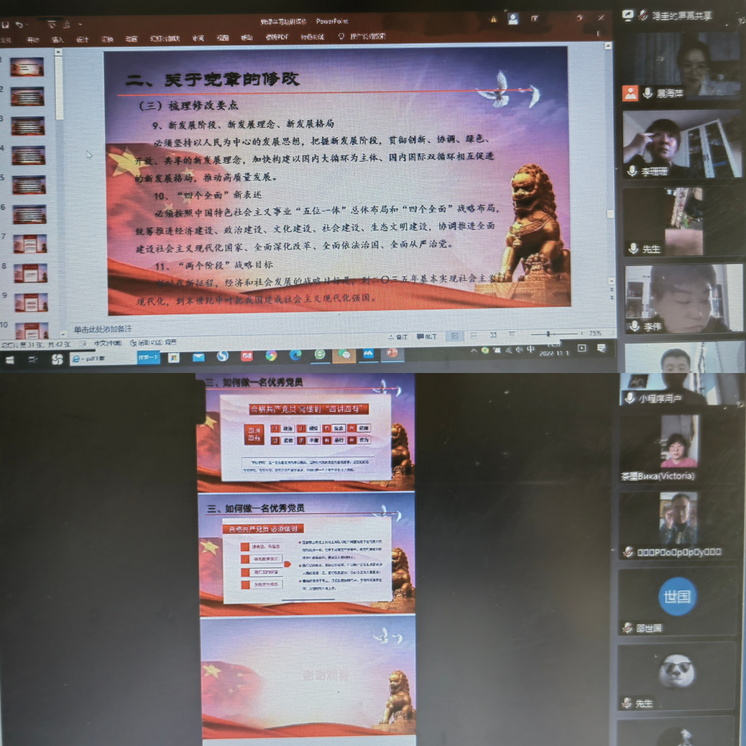 近日,新絲路公司黨支部線上開展了“黨的二十大報告專題學習”主題黨日活動和新黨章學習培訓,充分學習黨的二十大召開重要意義和會議精神,把全員思想和行動統一到黨的二十大精神上,把黨的二十大精神貫徹落實到各項工作中,為保障新絲路公司全年任務目標圓滿完成和推進隴神戎發實現高質量發展賦能。