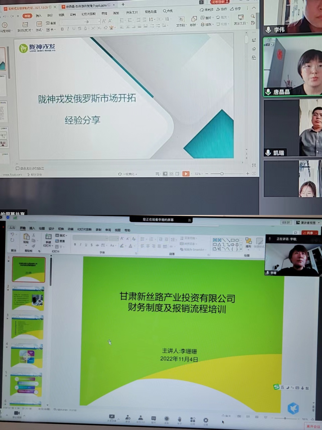 同時,公司本周連續五天安排了“走進新絲路”、“產品境外注冊業務之俄羅斯注冊篇”、“公司主要經營中藥材知識學習”、“財務制度和報銷流程培訓”等學習培訓和“成本分析”業務對接會,利用本次機會向新老員工進行了系統地介紹和講解新絲路的發展歷程、業務操作流程、如何提升團隊凝聚力及未來發展規劃等內容。此外,公司還統籌協調,積極參加了集團公司和母公司組織的各項培訓,切實做到了居家封控期間學習、工作兩不誤,培訓、業務兩手抓,持續激發員工干事創業熱情。