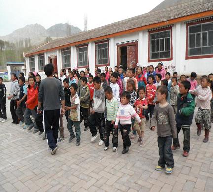 后來的日子里,我們給孩子們組織召開了化旦尖措小學的第一次運動會。清晨的冷風冰凍了我們拿著粉筆畫跑道的雙手,而孩子們的主動幫忙溫暖鼓舞了我們的士氣,我們克服了中途停電等種種困難在上午舉行完了個人組的比賽。孩子們踢毽子的靈活,跳繩的輕盈,跑步的飛快,比賽時的團結……那一幕幕讓我第一次在那里想起了我的大學,想到在前幾天我們校園里舉行的運動會,雖然規模陣勢大不不同,但是每當進行曲響起、號令搶打響,我就會情不自禁地心潮澎湃。下午的時候,我們的團體賽也井然有序的進行著,大孩子給小孩子用藏語翻譯著我們說的漢語,小孩子用表情神態回應著我們的要求。所有項目都結束了,頒獎典禮上孩子的興奮依舊高漲,他們拿著我們從大學校園里募捐到的全新的文具和體育器材做的獎品時,笑得那么天真無邪,那么暖人心懷。