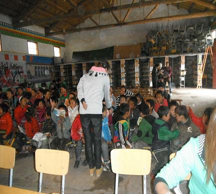 后來的日子里,我們又一起組織了朗誦比賽,我們十位小老師在召開第N次會的時候,確定了班主任組合,明確了帶領各班級準備朗誦比賽的具體工作。當了班主任才真正擁有深入了解、接觸孩子們的機會,小房子里再也沒有我們隊員的身影,每個人都在自己的班級里組織朗誦。朗誦比賽如期進行,作為主持人的我在臺上看著班主任們坐在自己班級的旁邊,那眼神里是滿滿的溫暖與呵護的疼惜,我突然覺得對我的隊友們有了一種更熟悉的陌生。當羅藏東之深情生動的在臺上朗誦詩,我們所有人都為這個“小明星”而喝彩。當小小的孩子們整齊的上下臺,鞠躬行禮說那些“尊敬的老師,親愛的同學們…..”的時候我們所有人都感到欣慰,甚至是在反思,反思我們大學生在參加在集體活動時所表現出來的精神風貌。又一次頒獎典禮是在我們風箏公益團表演完英語情景劇之后。學校的東芝老師用英語給我說謝謝并總結了表揚了我們在的幾天里給孩子們帶來的溫暖快樂。我們驚呆了,被眼前這位三十六歲還未結婚的樂觀可愛的男老師的漢藏英三語通的偉大撼動了。