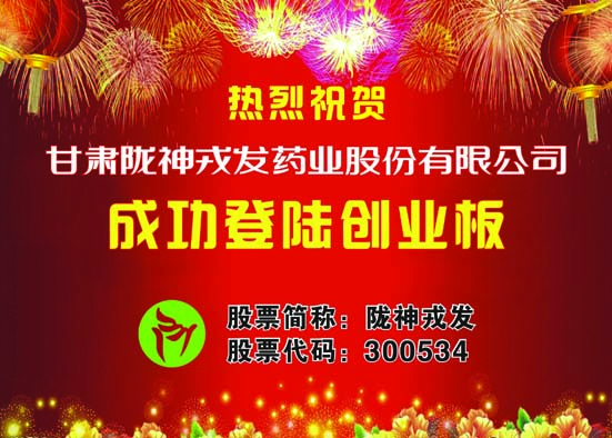 隴神戎發股票成功在創業版掛牌上市,這是公司發展歷程中的一個重要里程碑,也是企業未來實現跨越式發展的新起點、新機遇。在新的征程中,隴神戎發將牢牢把握這一寶貴機遇,朝著推進中藥現代化、國際化的目標,嚴格按照上市公司治理規范,恪守誠信,科學管理,通過募投項目的實施,促進產品結構優化和產業升級,提升企業創新能力,打造優質品牌,實現公司業績持續穩健增長,為廣大投資者提供持續穩定的投資回報!