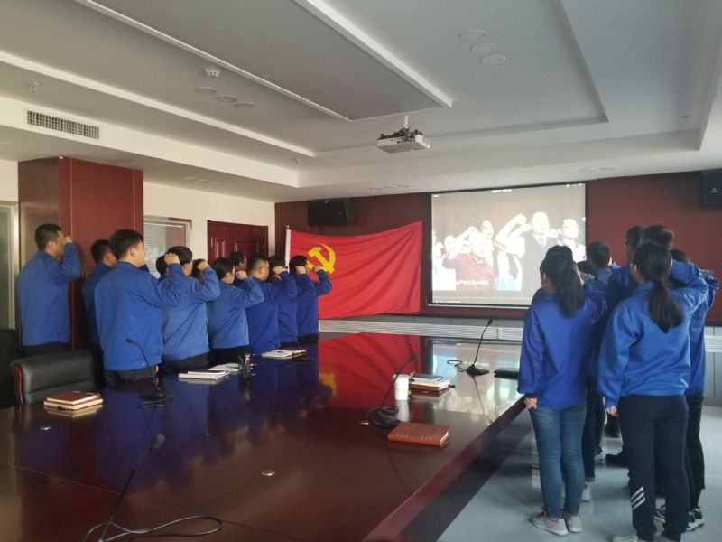 最后,生產黨支部全體黨員再次面向黨旗,在影片中榜樣的帶領下鄭重宣誓,重溫入黨誓詞,重尋自己入黨時的初心。