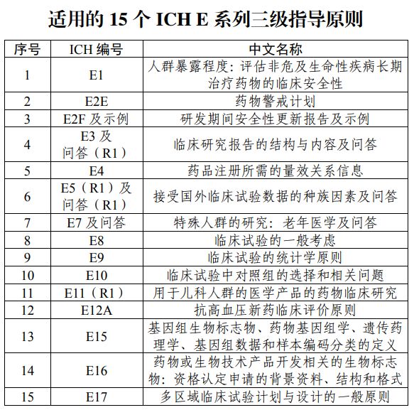 國家藥監局關于適用《E1:人群暴露程度:評估非危及生命性疾病長期治療藥物的臨床安全性》等15個ICH指導原則的公告