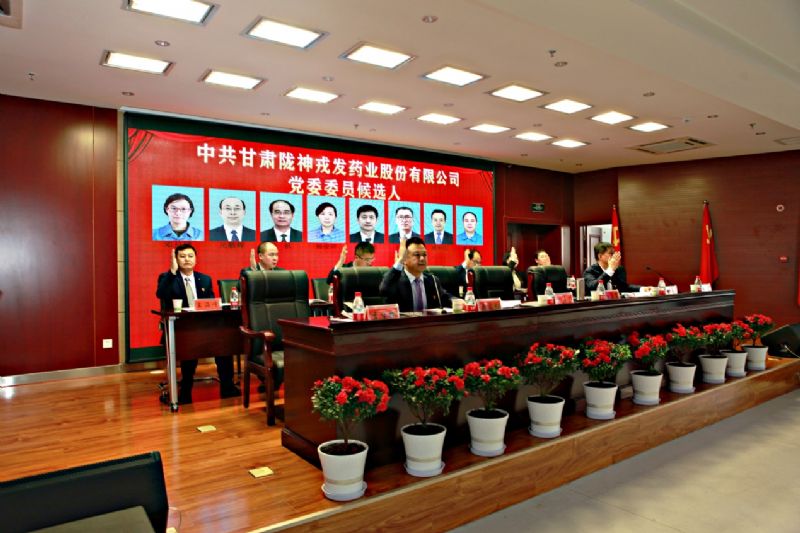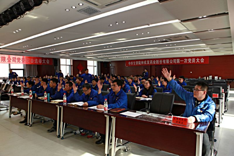 2019年3月14日,甘肅隴神戎發藥業股份有限公司第一次黨員大會暨黨委、紀委選舉大會圓滿完成各項議程勝利閉幕。公司全體黨員和特邀人員共90余人參加大會。此次大會邀請西北永新集團黨委書記、董事長康海軍,黨委副書記、紀委書記成炳彥,黨委組織部部長、人力資源部部長王宏武,黨委宣傳部部長、黨委辦公室副主任李生祥等領導蒞臨會議現場指導。