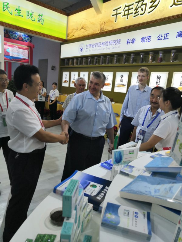 展會正式開啟后,甘肅隴神戎發藥業以其優質的產品、熱情的服務、細致的講解吸引眾多領導、參展商及觀眾駐足參觀了解。隴神戎發總經理康永紅先生熱烈歡迎俄羅斯代表團前來我公司展臺,詳細介紹公司發展及產品銷售情況,重點介紹產品在俄羅斯注冊銷售的情況。新絲路公司展海平女士做現場翻譯。