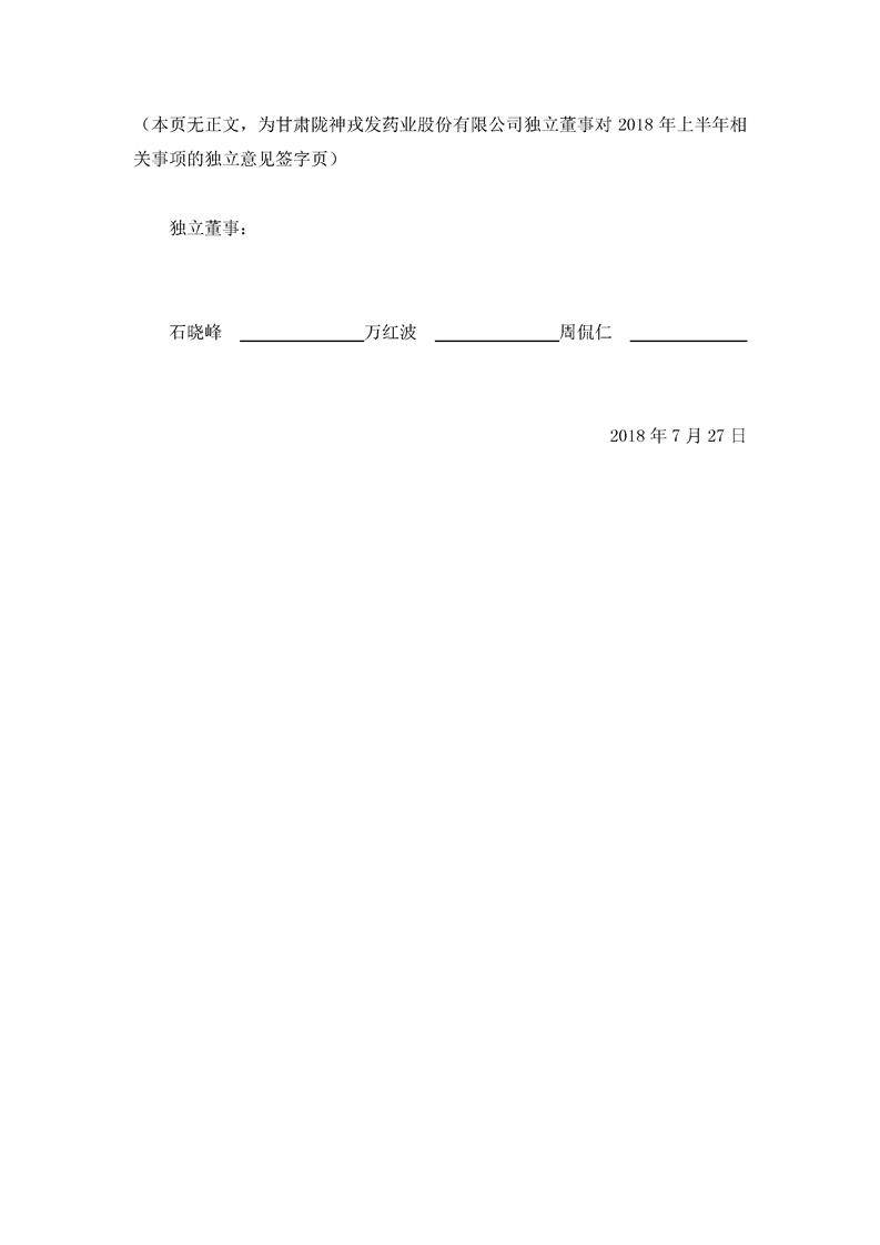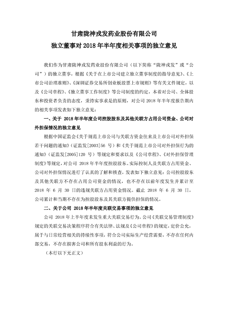 獨立董事對 2018 年半年度相關(guān)事項的獨立意見