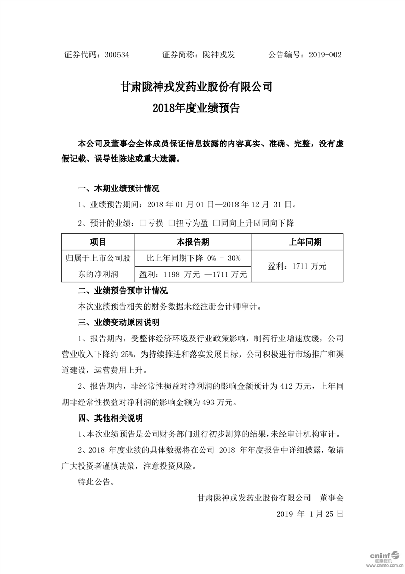 2018年度業績預告