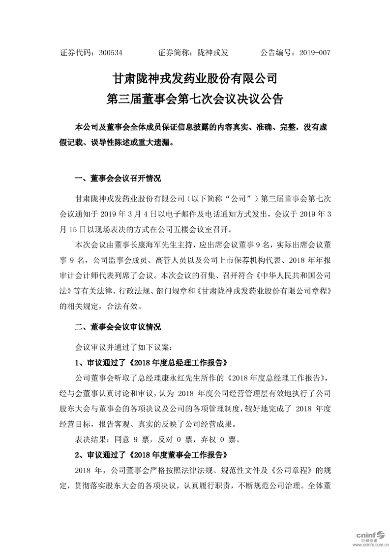 第三屆董事會第七次會議決議公告