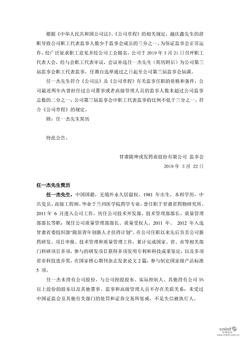 關(guān)于職工代表監(jiān)事辭職及補選職工代表監(jiān)事的公告