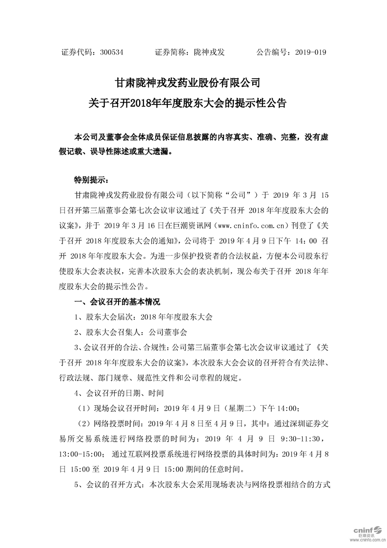 關(guān)于召開(kāi)2018年年度股東大會(huì)的提示性公告