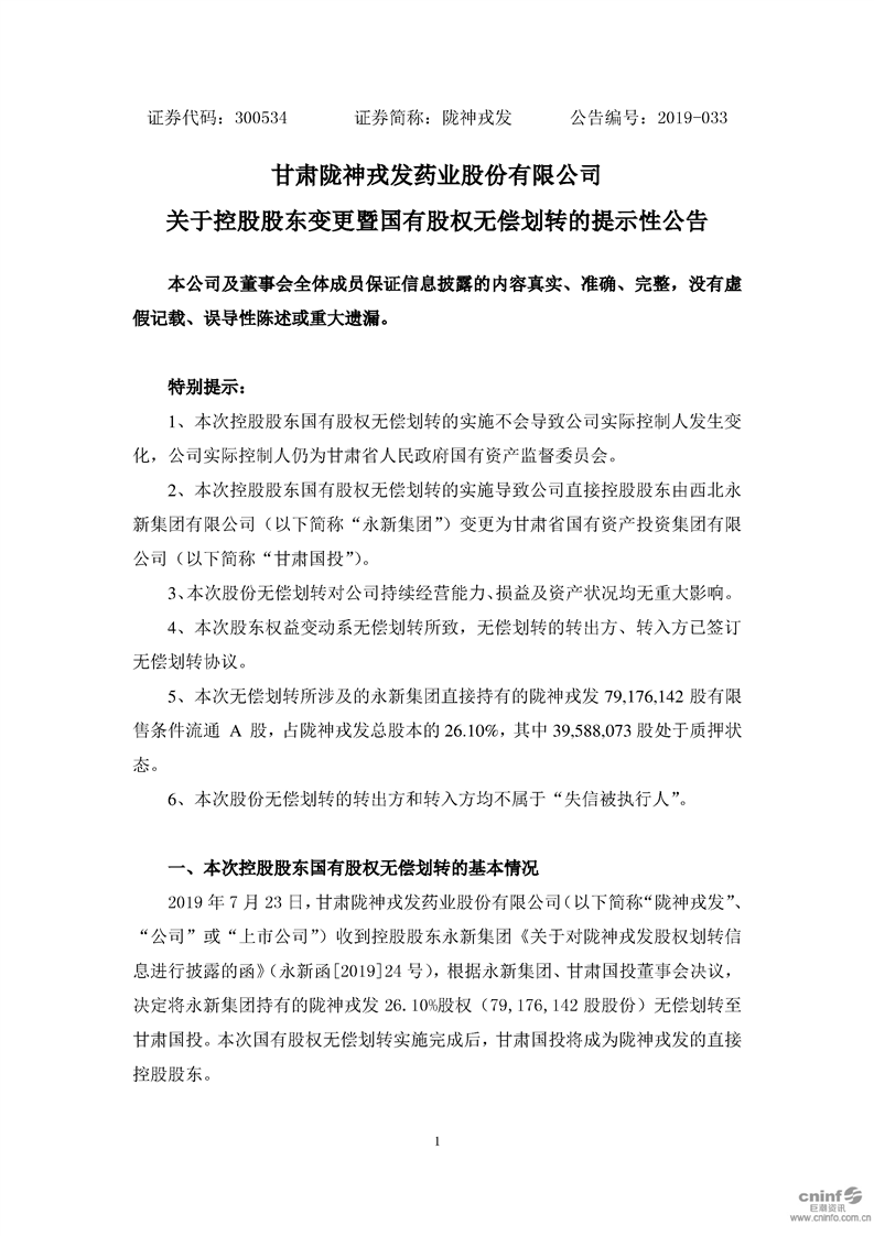 關于控股股東變更暨國有股權無償劃轉的提示性公告