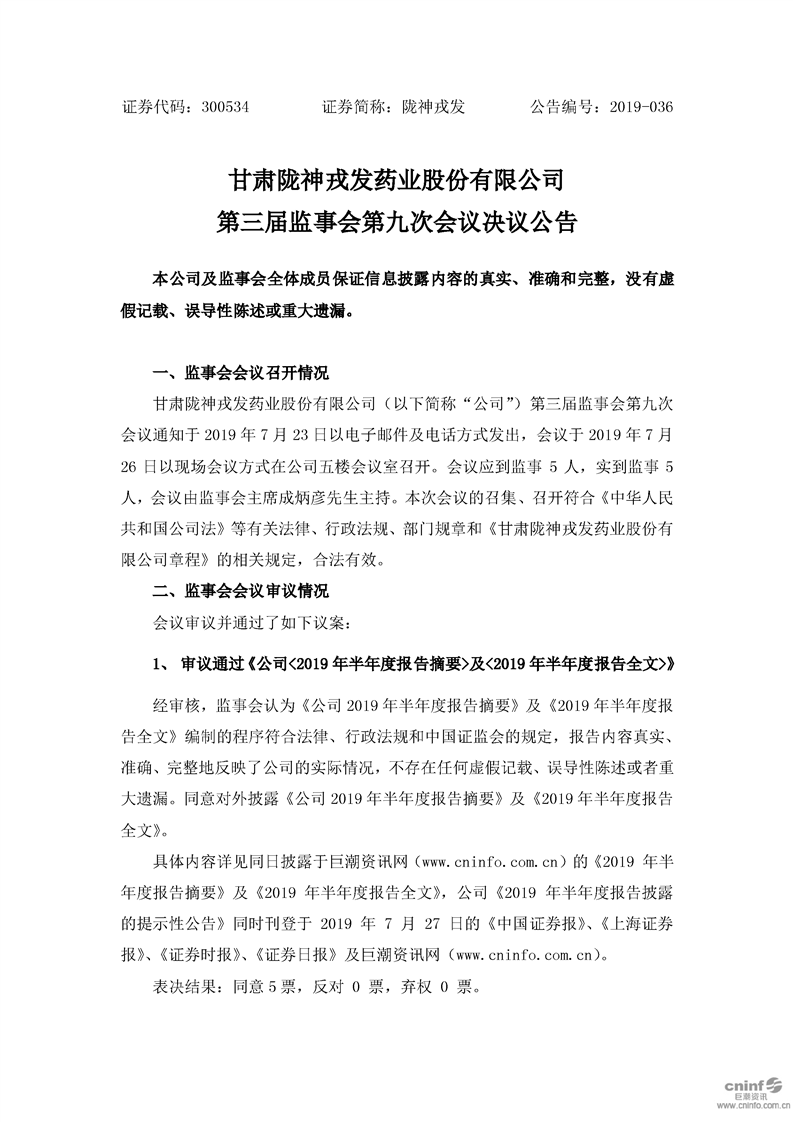 第三屆監事會第九次會議決議公告