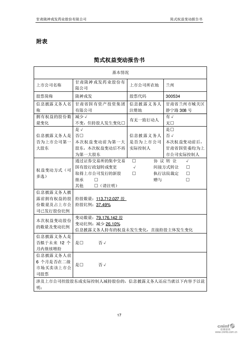 簡式權益變動報告書