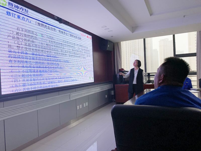 近日,國家藥品監督管理局發布了新版《藥品管理法》,將于2019年12月1號起實施。為了貫徹學習新版《藥品管理法》,提高公司生產經營隊伍素質,2019年9月12日,公司于六樓會議室組織了多個部門統一進行學習,由公司總工程師鄧月婷對相關內容及要點進行了詳細的講解培訓,對其中涉及到的多個難點進行了剖析與解答。