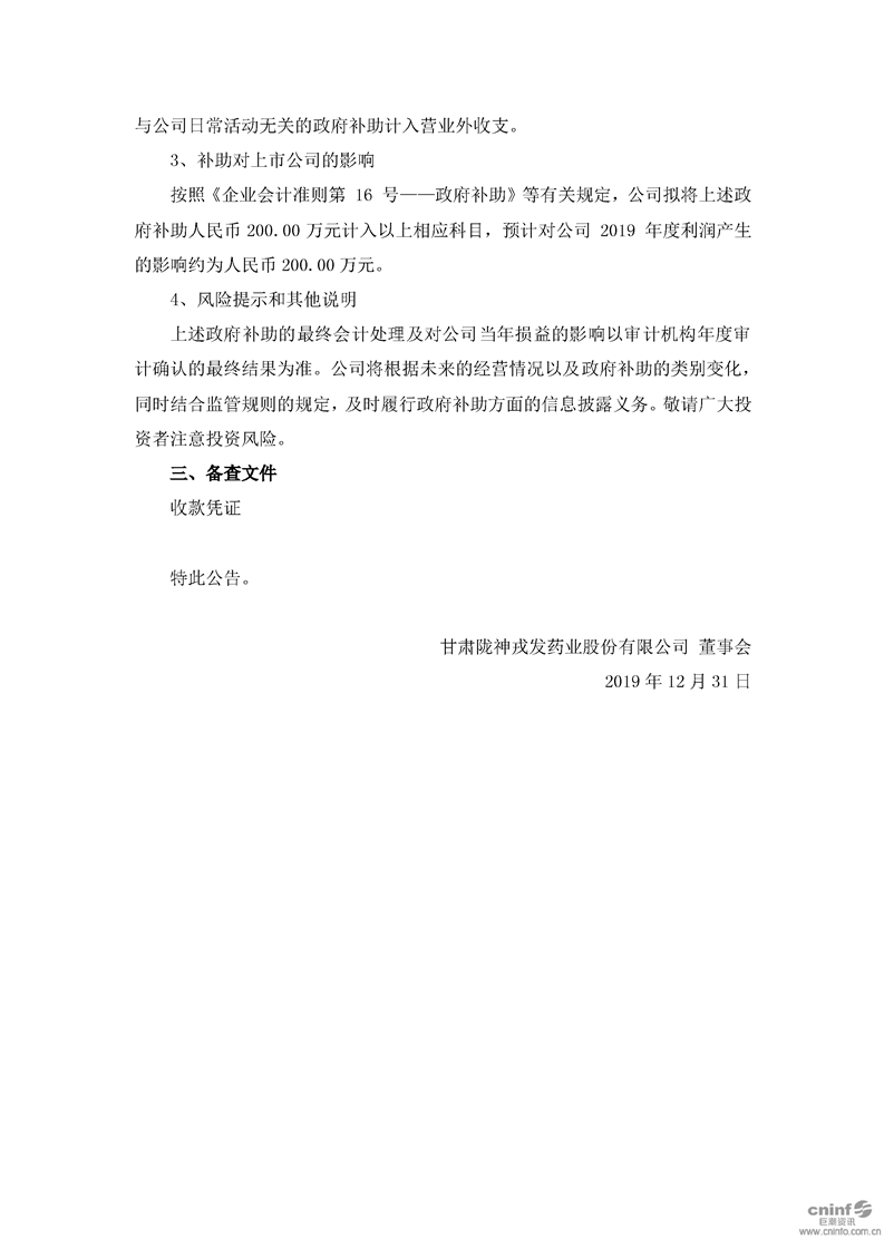 關于獲得政府補助的公告