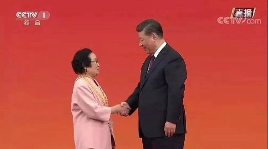 ↑習(xí)近平向屠呦呦頒授“共和國勛章”