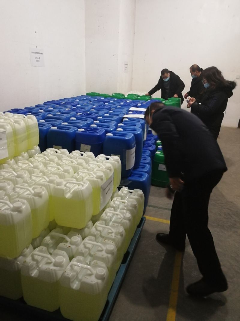 隴神戎發生產一線員工緊急配制75%酒精,用于疫情防控