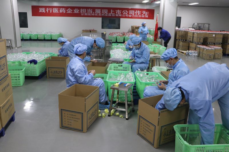 精準施策護航全面復產。為減少人員聚集,隴神戎發嚴格執行復工人員輪崗及倒班制度,開工以后每天兩次體溫監測,同時加大對生產區的消殺頻次,對人員實行倒班制,白班從100多個職工減少到了51人,中班從30人減少到15人,夜班3人,截止2月29日,生產元胡止痛滴丸10836萬丸、復方丹參片800萬片、麻杏止咳膠囊100萬粒。同時,根據當前疫情防控情況市場需求,結合隴神戎發實際情況,以及隴神戎發未來發展規劃等因素,著手變更經營范圍并修改《公司章程》,將“口罩、防護服、消毒液、測溫儀等生產和銷售”納入隴神戎發經營范圍,新增日產能10噸75%乙醇消毒液生產線1條,目前已產75%乙醇消毒液71.6噸,已售44.35噸。