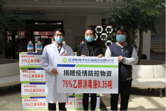 甘肅隴神戎發藥業股份有限公司向蘭州出入境邊防檢查站、甘肅省聽力語言康復中心捐贈75%乙醇消毒液