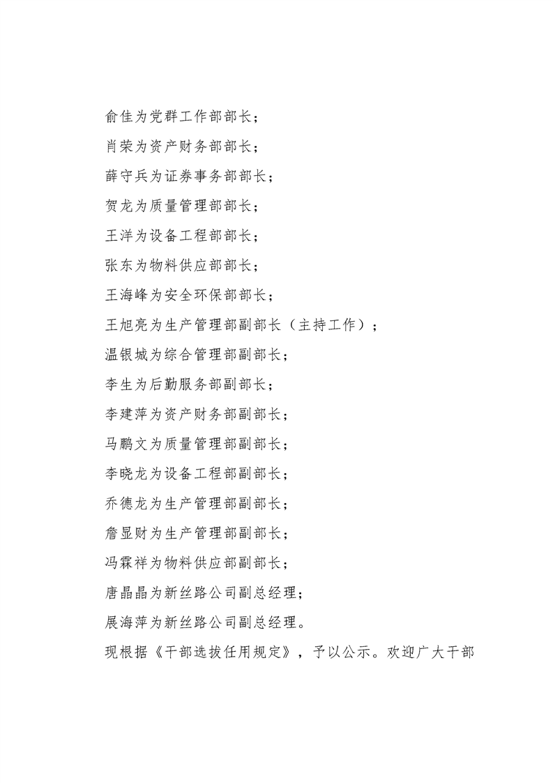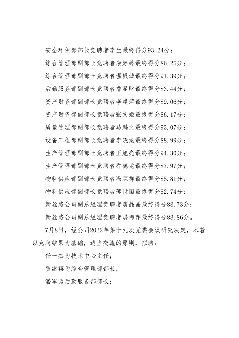 關于中層管理干部競聘成績及擬聘崗位的公示