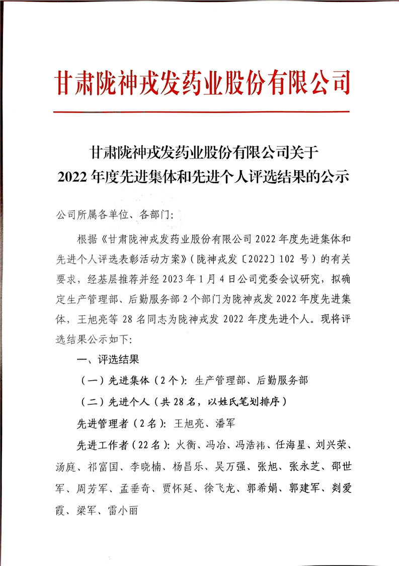 隴神戎發2022年度先進集體和先進個人評選結果的公示