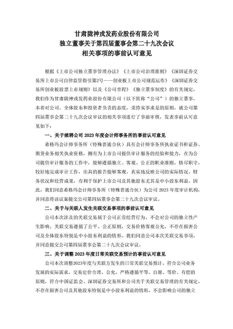 獨(dú)立董事關(guān)于第四屆董事會第二十九次會議相關(guān)事項(xiàng)的事前認(rèn)可意見
