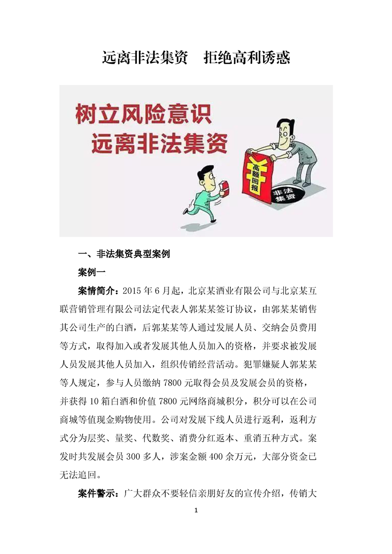遠(yuǎn)離非法集資 拒絕高利誘惑