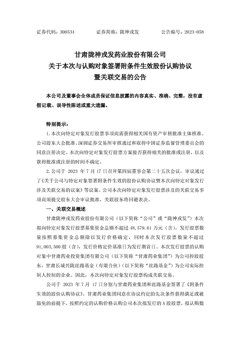 關于本次與認購對象簽署附條件生效股份認購協議暨關聯交易的公告