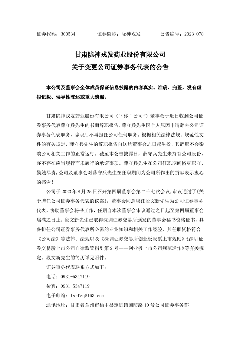 關于變更公司證券事務代表的公告