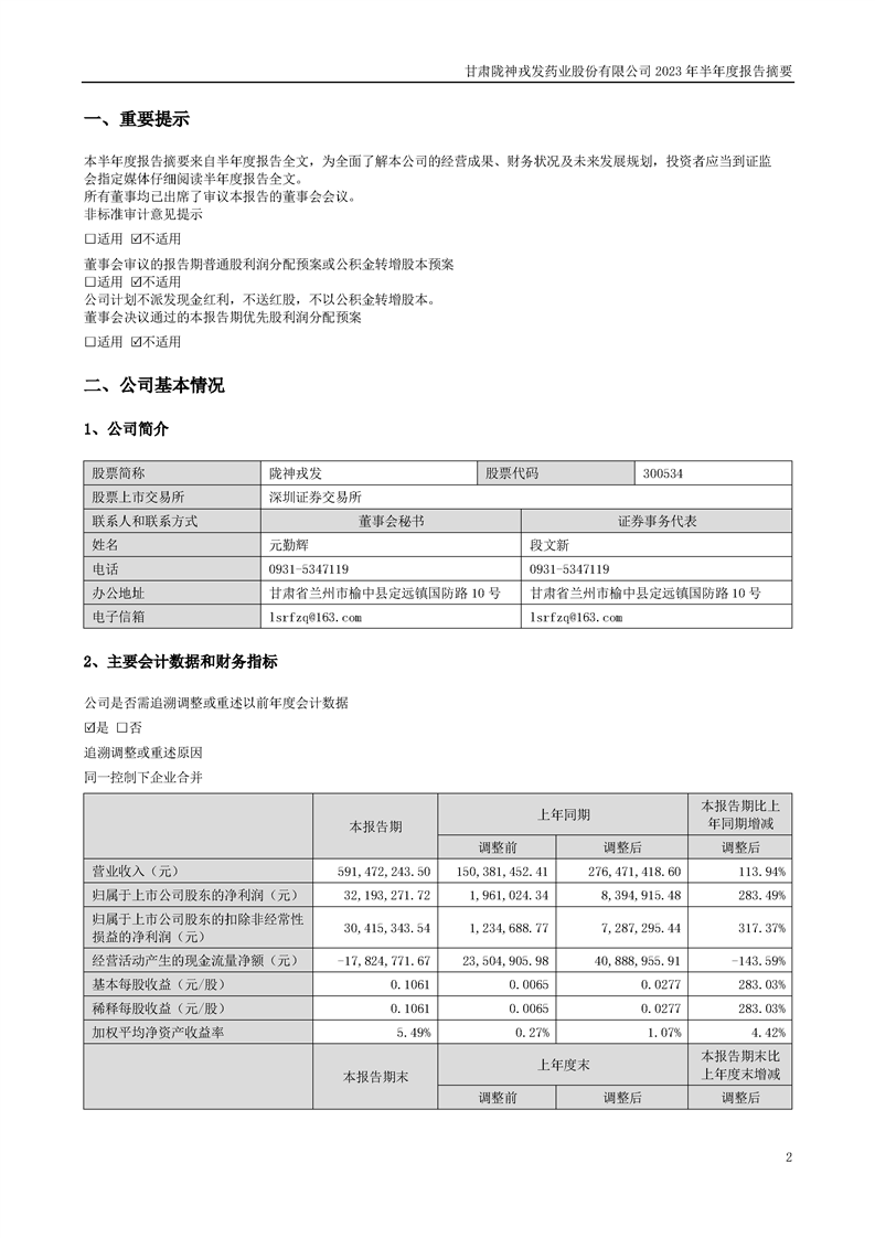 2023年半年度報告摘要