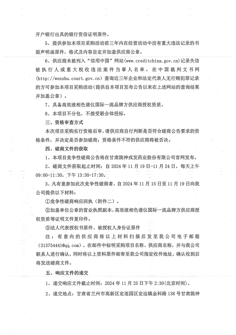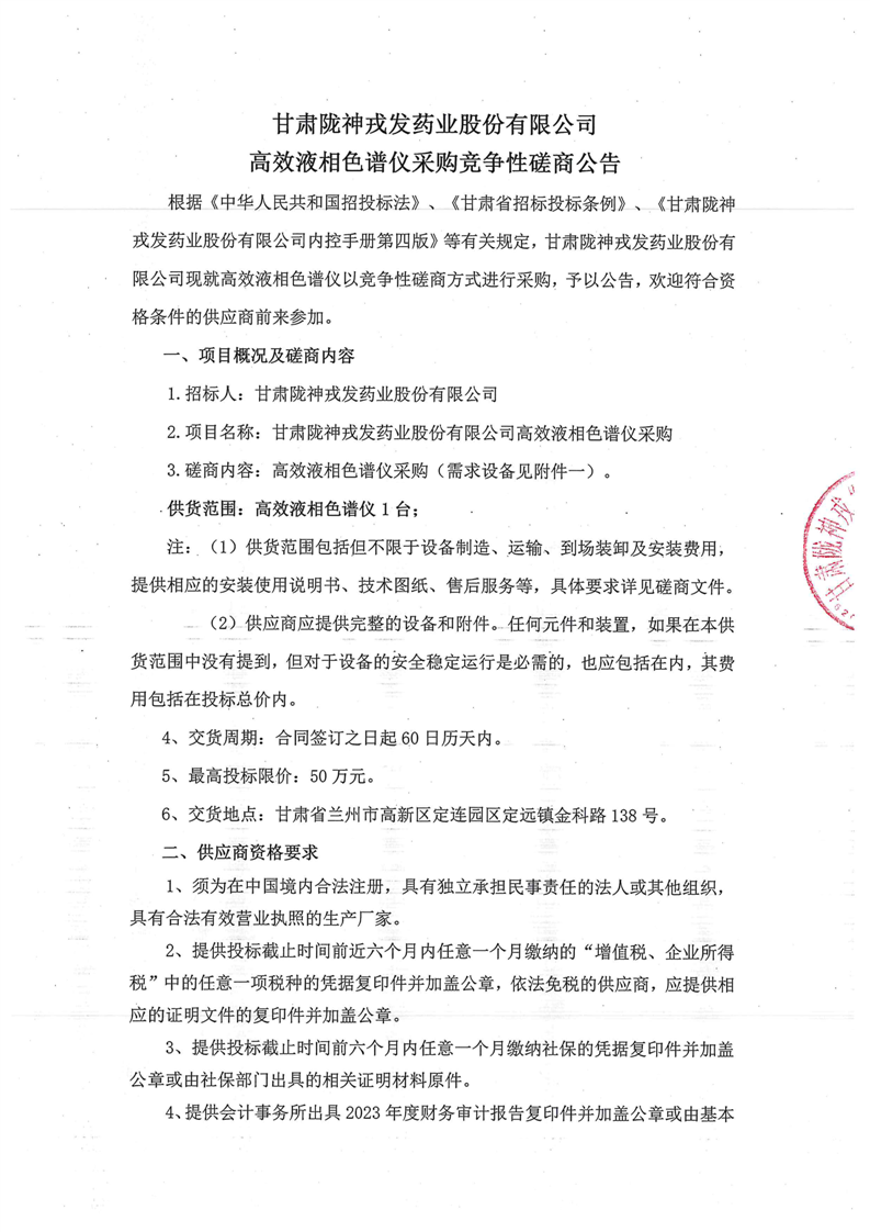 甘肅隴神戎發藥業股份有限公司高效液相色譜儀采購競爭性磋商公告