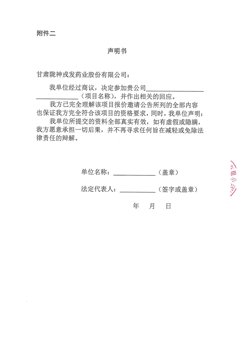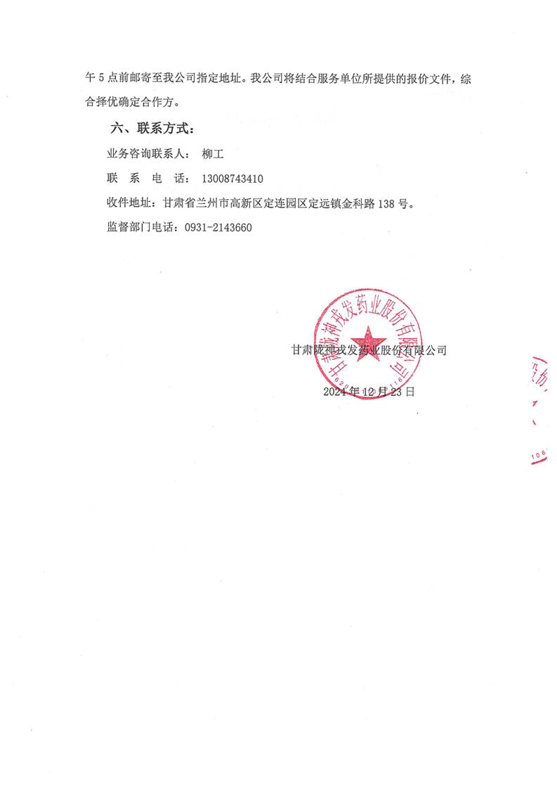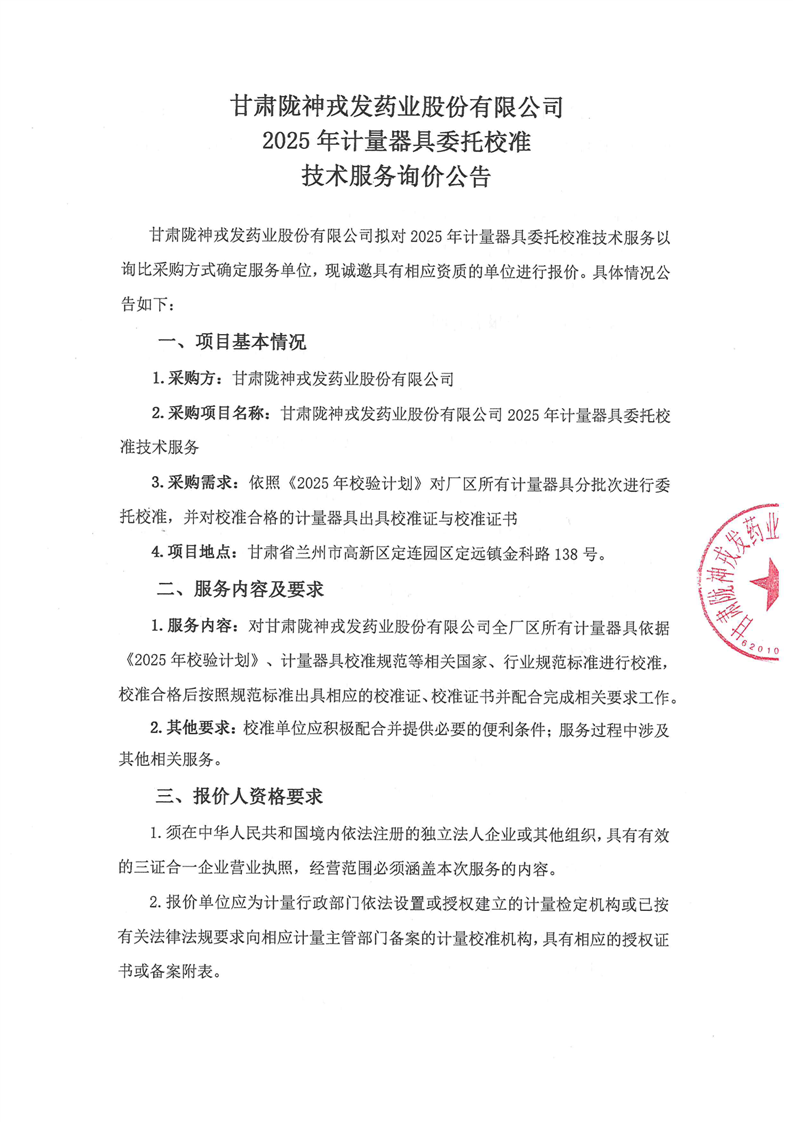 甘肅隴神戎發(fā)藥業(yè)股份有限公司2025年計量器具委托校準技術服務詢價公告