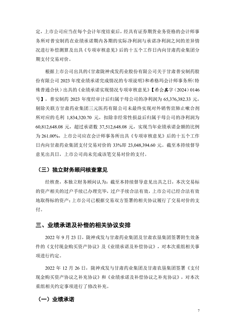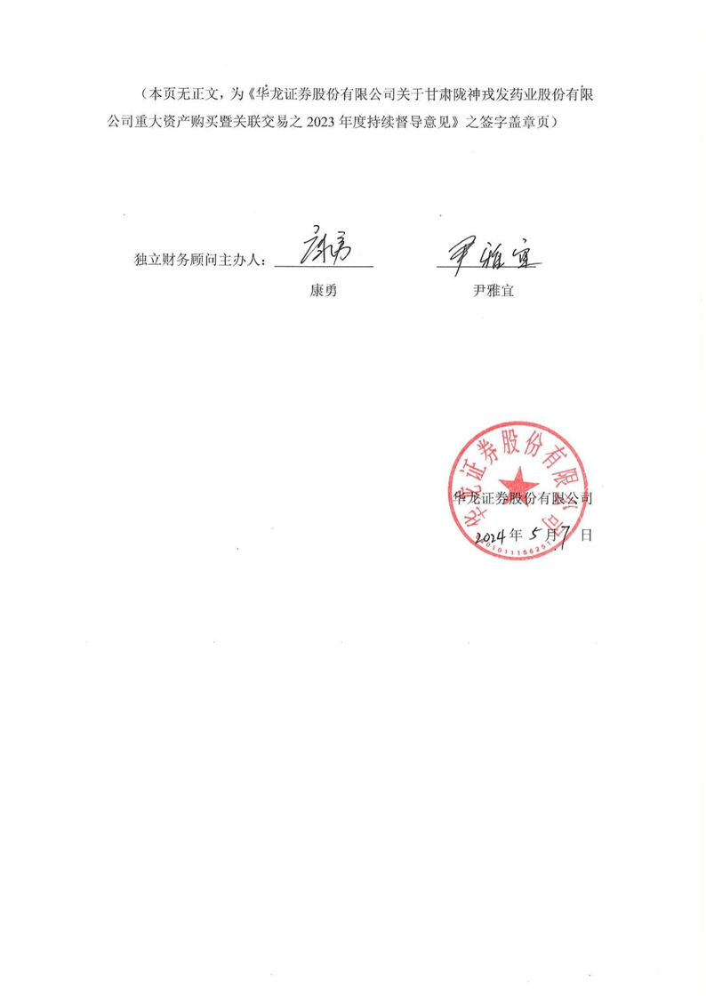 華龍證券股份有限公司關(guān)于甘肅隴神戎發(fā)藥業(yè)股份有限公司重大資產(chǎn)購買暨關(guān)聯(lián)交易之2023年度持續(xù)督導(dǎo)意見(更正后)