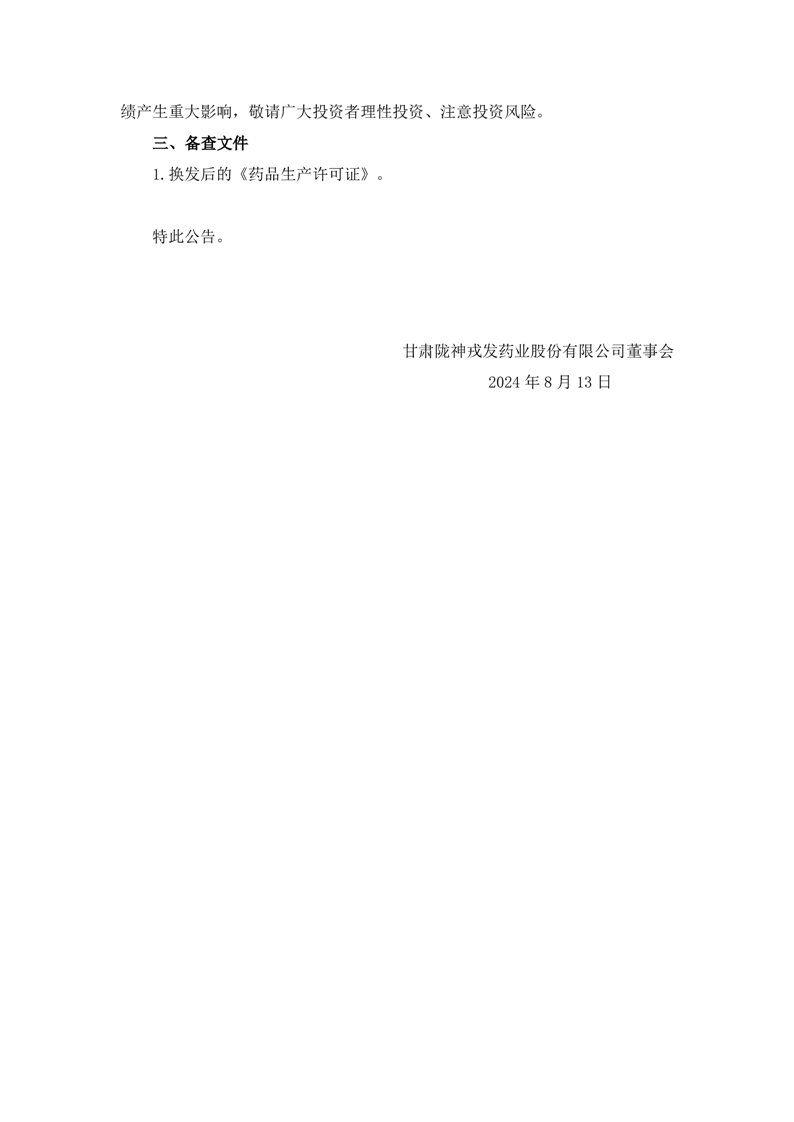 關于取得換發(fā)后的《藥品生產(chǎn)許可證》的公告