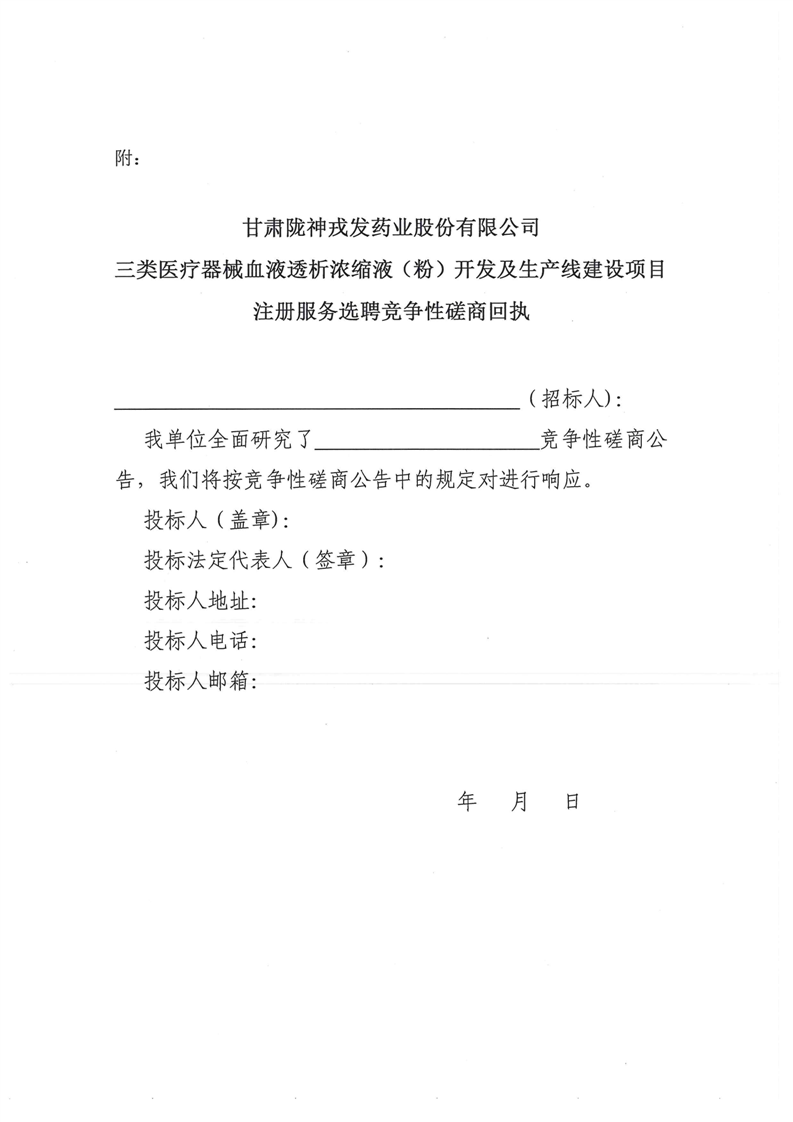 甘肅隴神戎發(fā)藥業(yè)股份有限公司三類醫(yī)療器械血液透析濃縮液(粉)開發(fā)及生產(chǎn)線建設(shè)項(xiàng)目注冊服務(wù)機(jī)構(gòu)選聘競爭性磋商公告