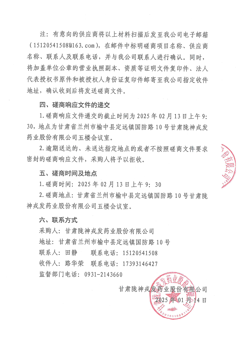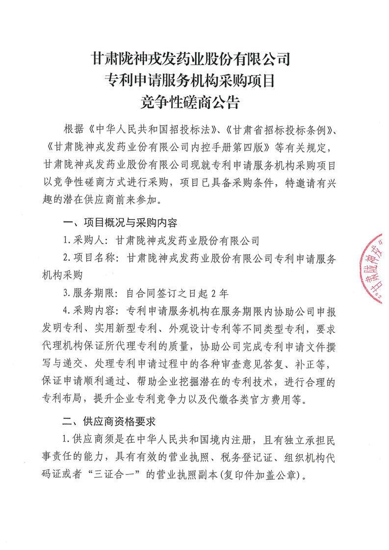 甘肅隴神戎發藥業股份有限公司專利申請服務機構采購項目競爭性磋商公告