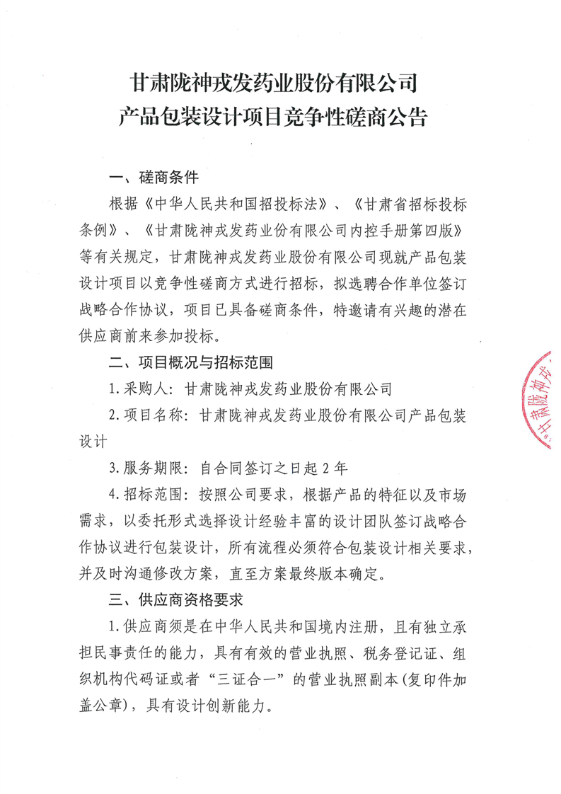 甘肅隴神戎發藥業股份有限公司產品包裝設計項目競爭性磋商公告
