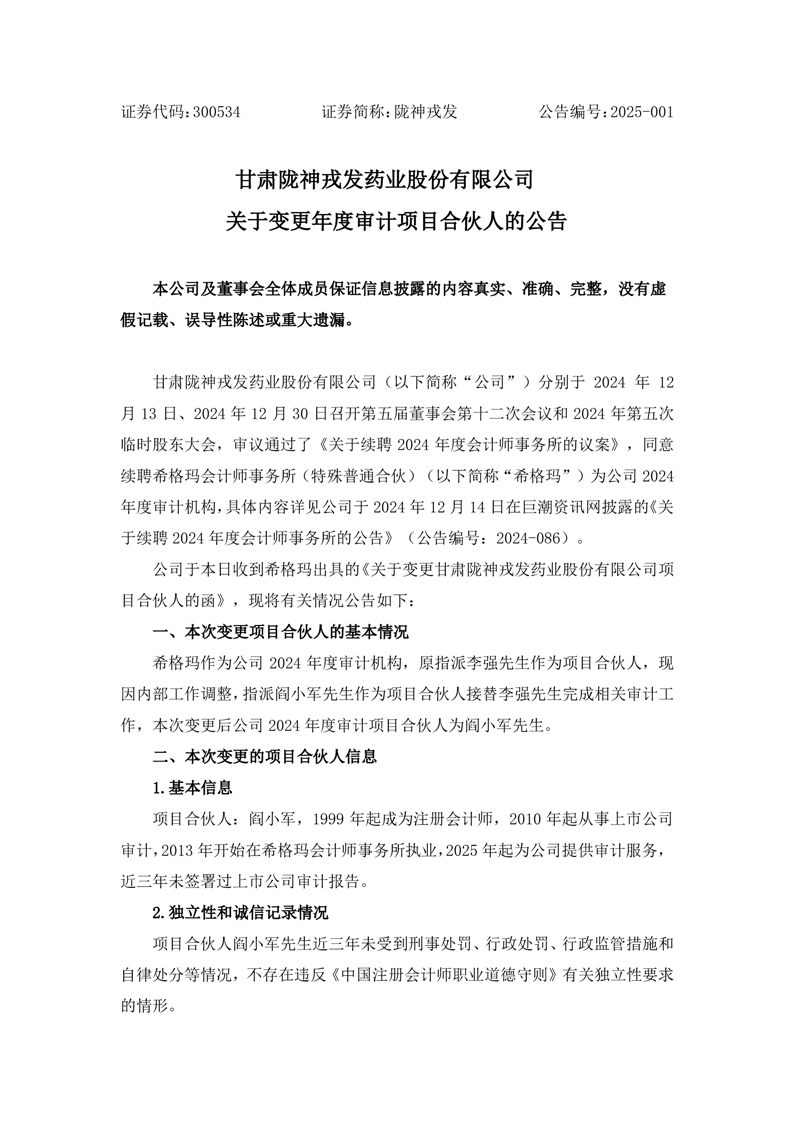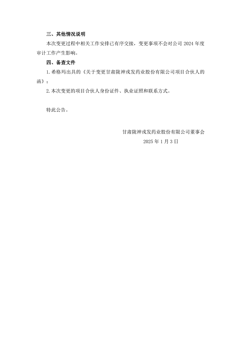 關(guān)于變更年度審計(jì)項(xiàng)目合伙人的公告