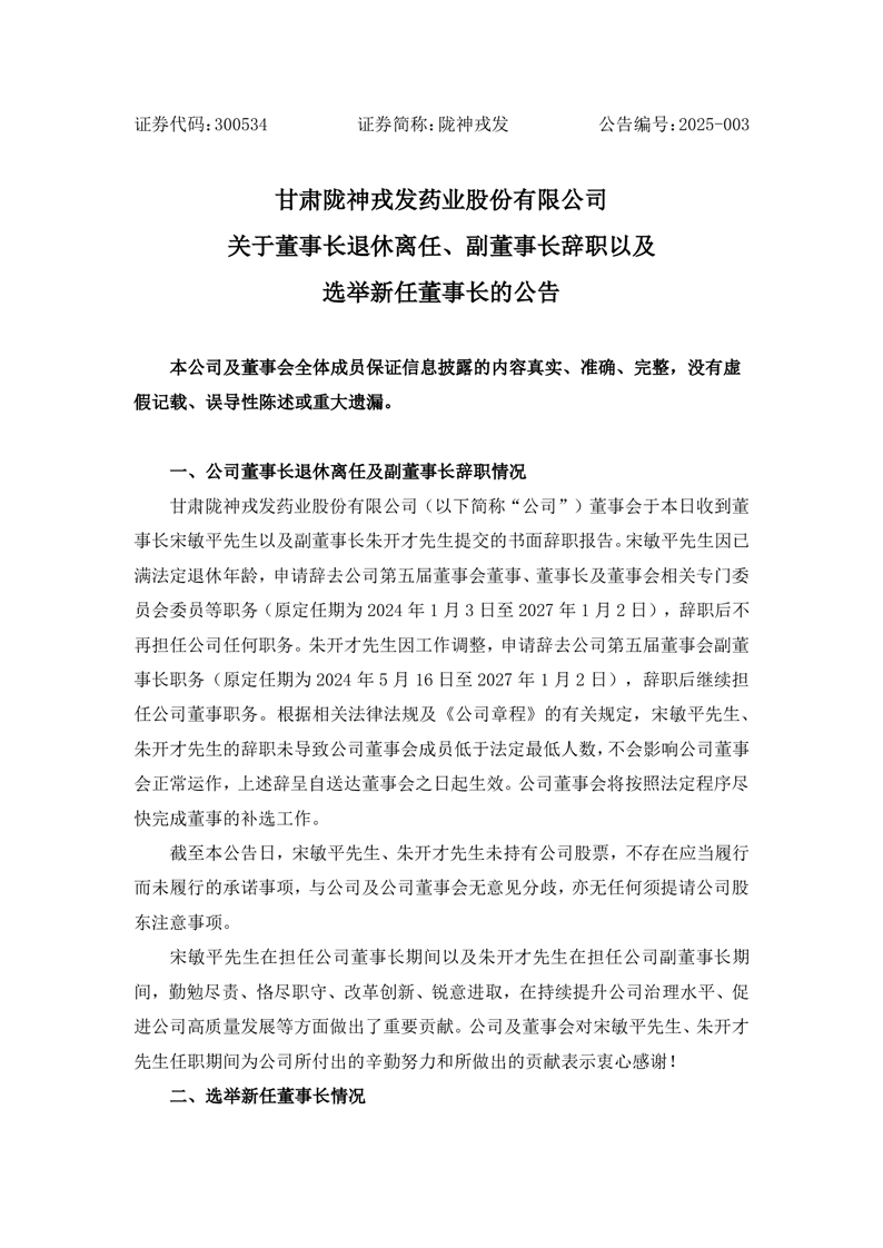 關于董事長退休離任、副董事長辭職以及選舉新任董事長的公告