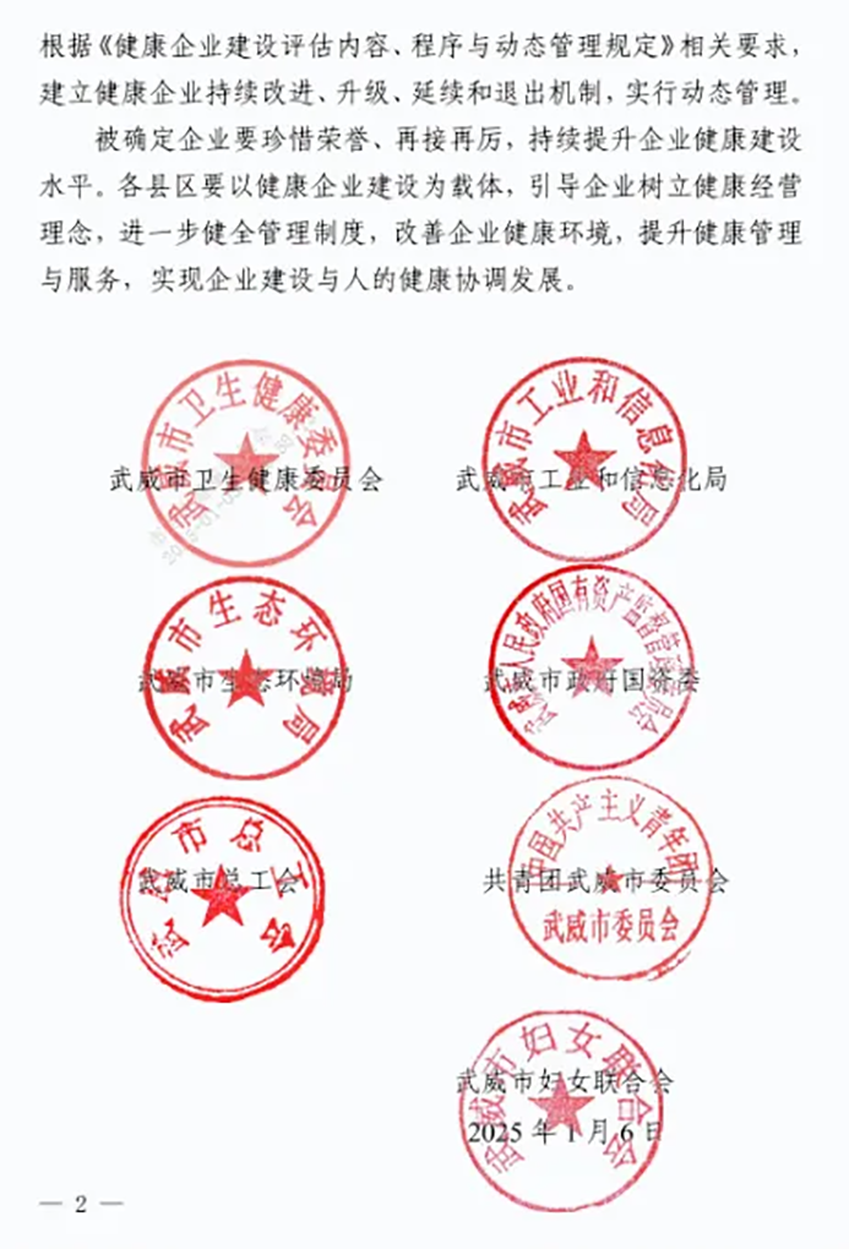 近日,甘肅普安制藥股份有限公司憑借其在健康企業建設方面的卓越表現,榮獲武威市“健康企業”榮譽稱號。這一殊榮是對公司貫徹“健康中國戰略”、推進“健康企業”建設成果的高度認可,標志著公司在健全管理制度、建設健康環境、營造健康文化等方面取得了顯著成效。