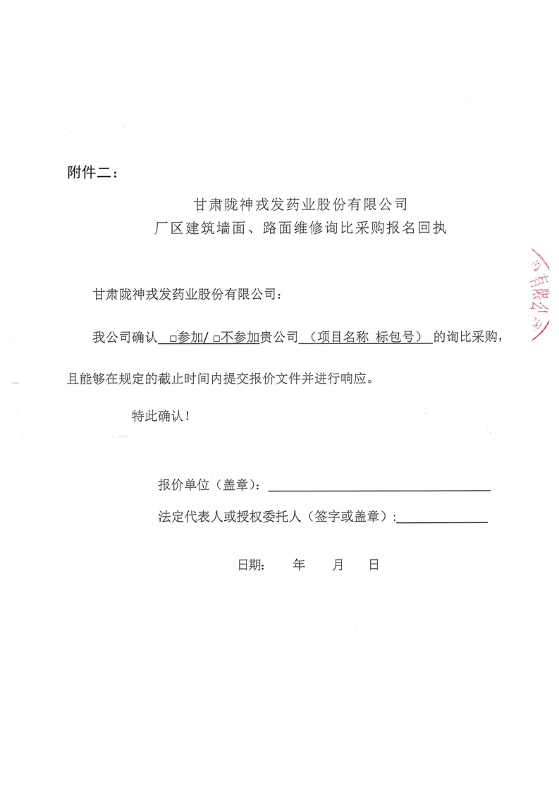 甘肅隴神戎發藥業股份有限公司廠區建筑墻面、路面維修詢比采購公告