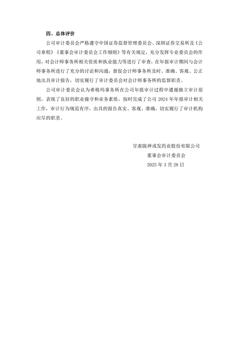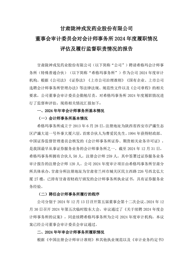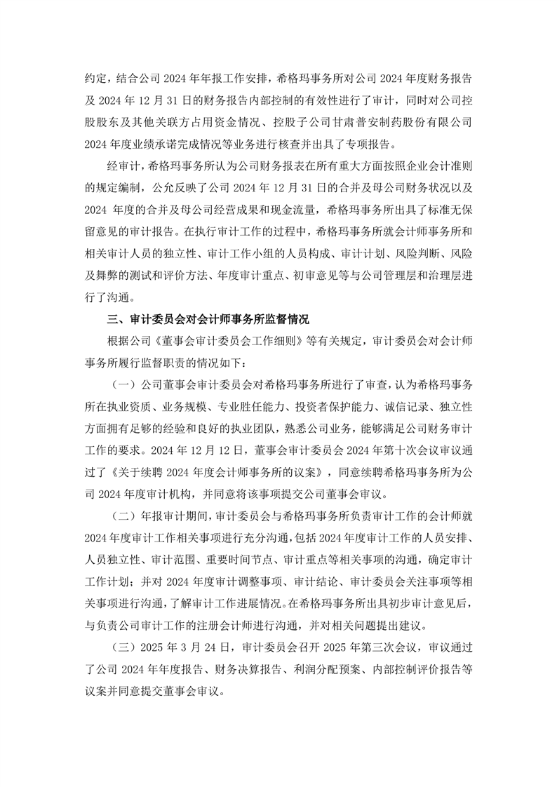 董事會審計委員會對會計師事務所2024年度履職情況評估及履行監督職責情況的報告