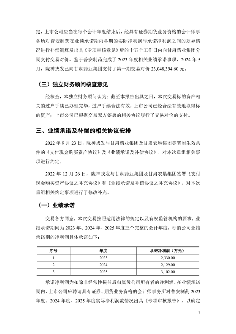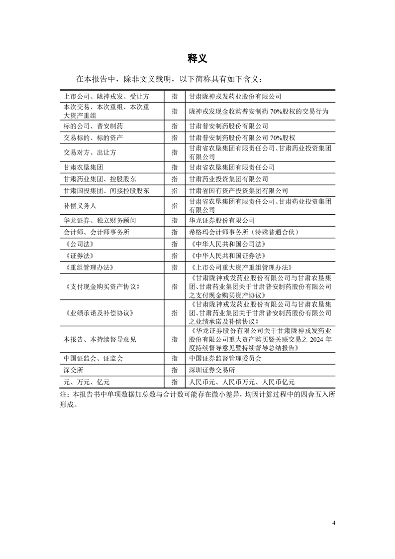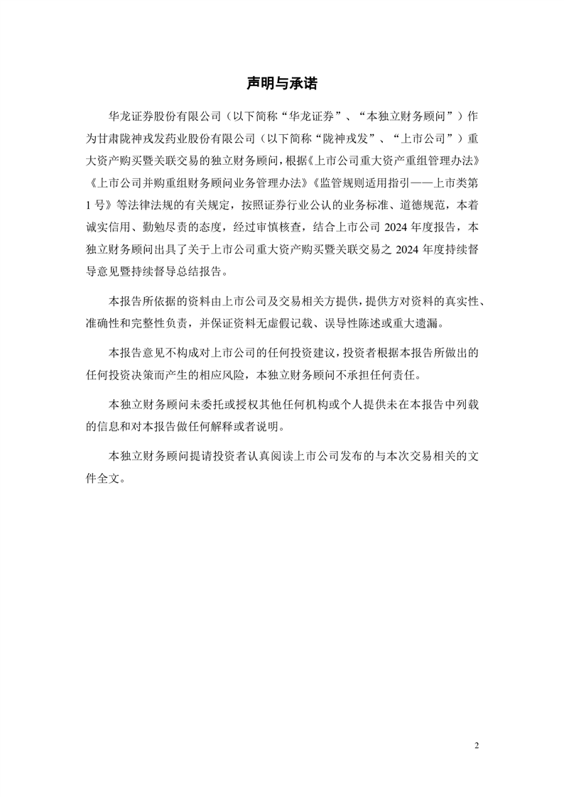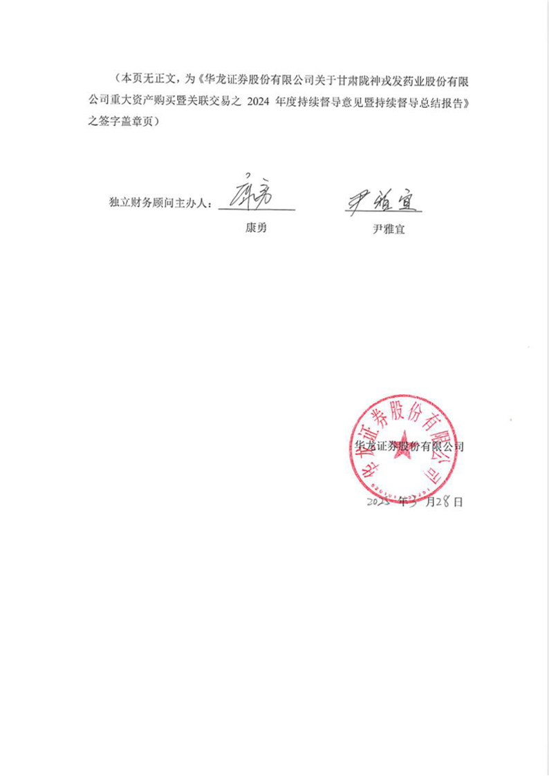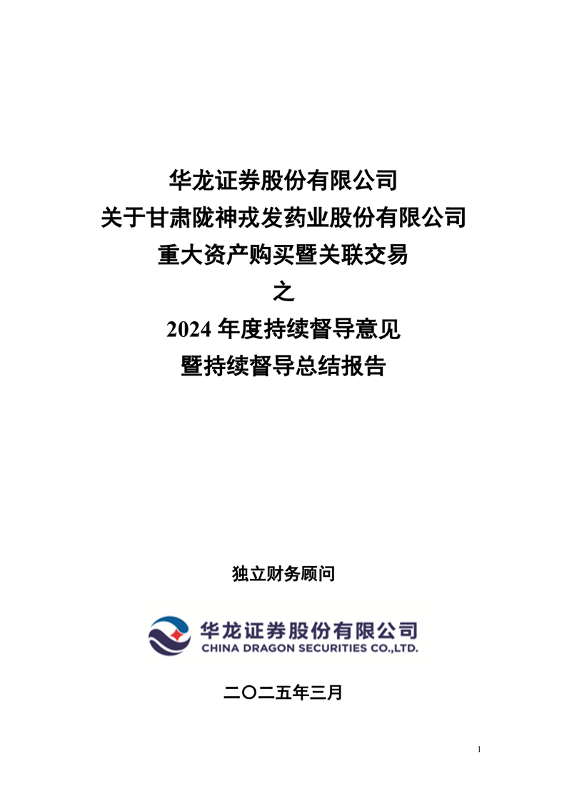 華龍證券股份有限公司關于甘肅隴神戎發藥業股份有限公司重大資產購買暨關聯交易之2024年度持續督導意見暨持續督導總結報告