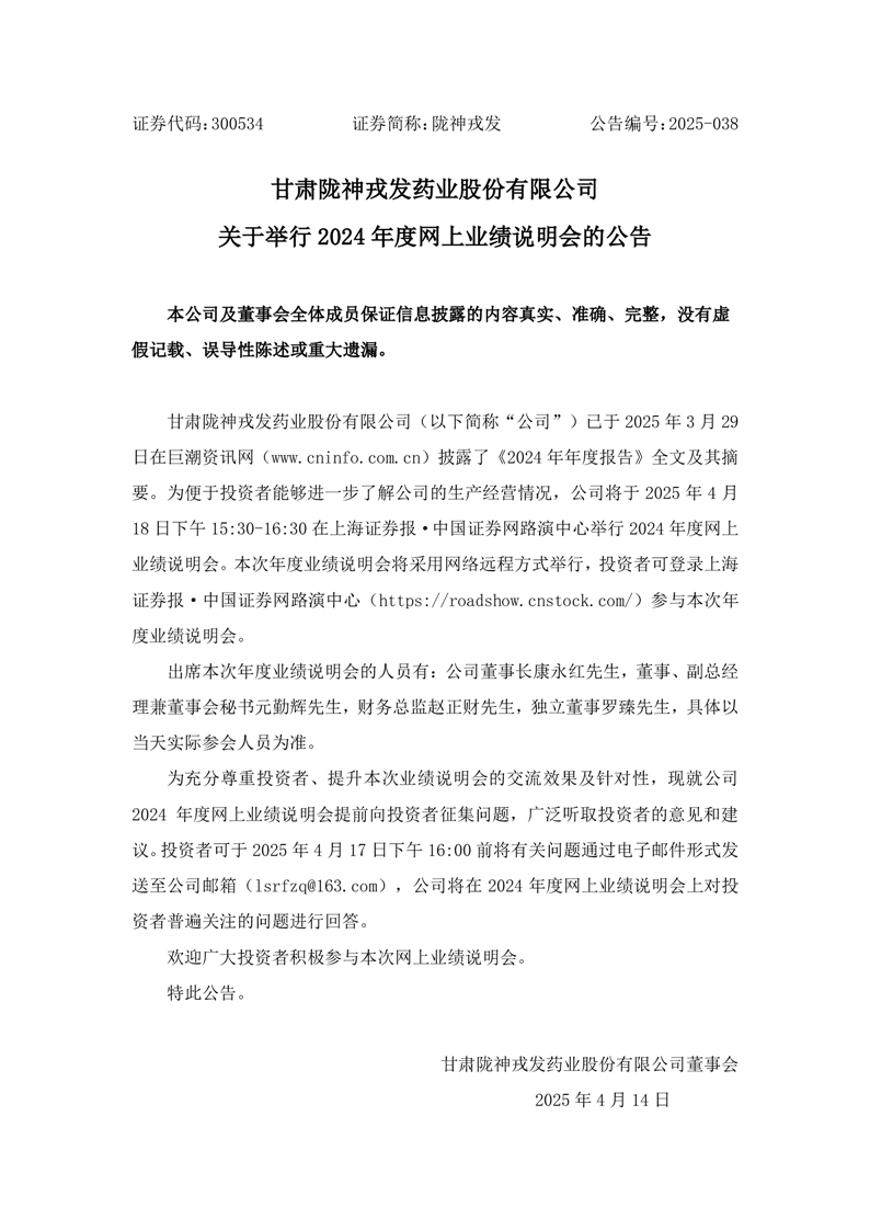 關于舉行2024年度網上業績說明會的公告