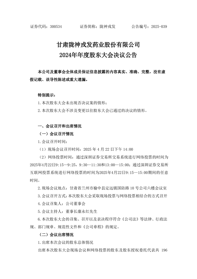 2024年年度股東大會決議公告