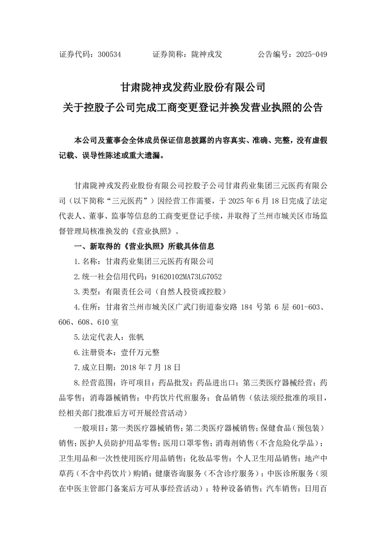 關于控股子公司完成工商變更登記并換發營業執照的公告
