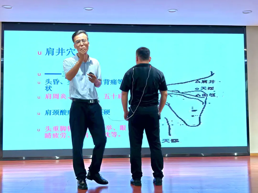 針對職場常見的肩頸酸痛等問題,演示了簡易理療手法(如頸部繞環、肩部熱敷),教育職工通過緩解身體不適改善情緒狀態。強調“身心同調”的減壓思路:鼓勵職工將身體鍛煉作為調節心理的方式,比如通過缺血預適應訓練等運動釋放負面情緒;同時在生活中保持規律作息,從健康的身體狀態中獲得安全感與滿足感,為心理健康“加分”。