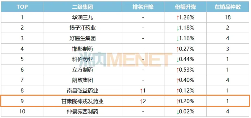 同時(shí),在2025年Q1中成藥胃藥(胃炎、潰瘍)二級集團(tuán)中,甘肅隴神戎發(fā)藥業(yè)排名上升2位至TOP9、銷售額增長了8.95%。
